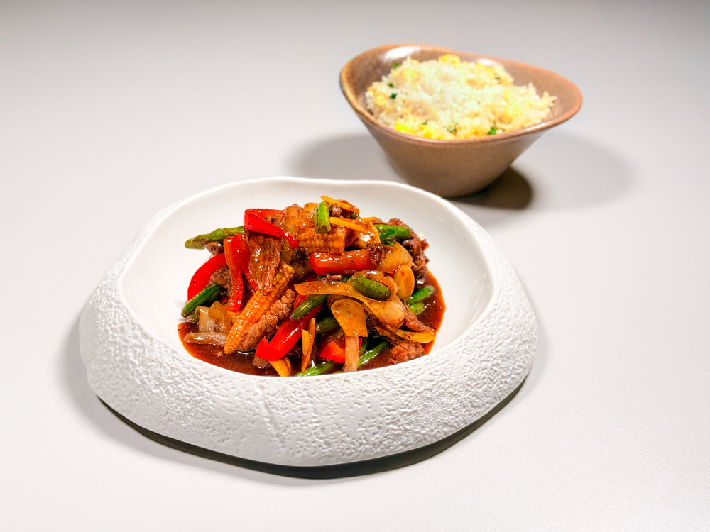Descoperă deliciul intens al Black Pepper Beef! Bucăți suculente de carne de vită, gătite perfect într-un sos bogat de piper negru, oferă o experiență gustativă irezistibilă. Savurează aroma și textura în fiecare mușcătură.
