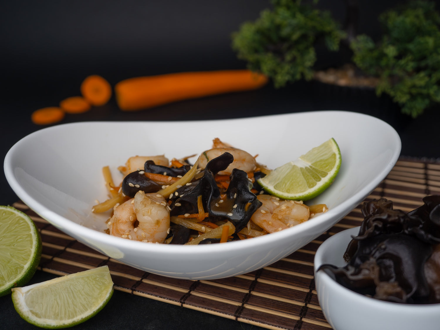 SPECIAL CU CIUPERCI DE LEMN este un preparat tras la tigaie cu urechi de lemn, morcovi, felii de bambus, ceapă verde, sos de stridii, semințe de susan și lime. Servit cu Orez Jasmine sau Tăitei. WOOD